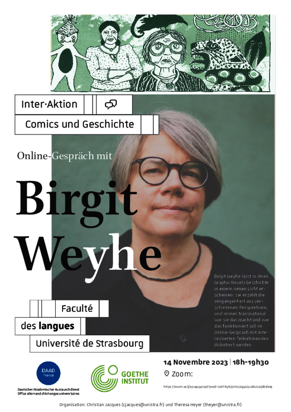 InterAktion ist ein deutschsprachiger Online-Austausch, bei dem ein Thema innerhalb einer bzw. anderthalb Stunde vorgestellt und diskutiert wird. Diesmal empfangen wir Birgit Weyhe Autorin zahlreicher Graphic Novels, in denen sie Geschichte in einem anderen erscheinen lässt: Sie erzählt die…